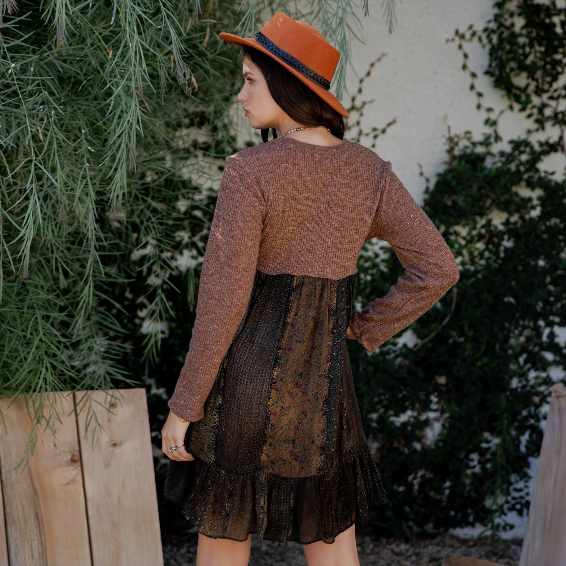 Embrace cozy charm with our Modern Boho Patchwork Babydoll Dress, crafted from soft ribbed sweater knit with playful patchwork panels. Featuring a round neckline, long sleeves, and a convenient front zipper, this dress offers both comfort and flair. The mix of textured woven patches adds eclectic appeal, while its flattering babydoll fit hits mid-thigh for a fun, flirty vibe. Perfect for cooler days, it’s breathable and warm with an easy hand-wash care routine. Each dress is one-of-a-kind thanks to its unique patchwork—grab yours before it’s gone and add a quirky twist to your wardrobe!